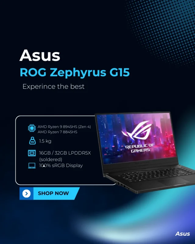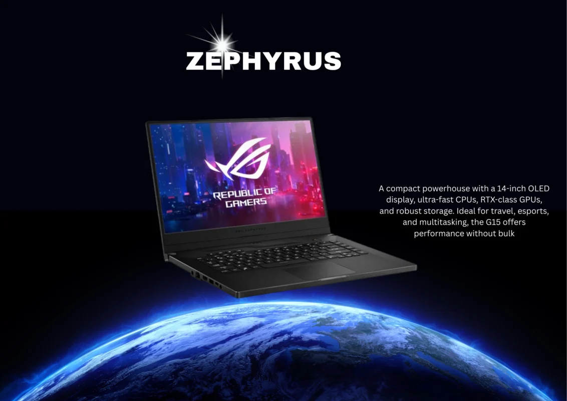 In today’s competitive digital landscape, performance, mobility, and innovation define your edge. The ASUS Republic of Gamers (ROG) Zephyrus series embodies these qualities, offering laptops that not only excel in raw performance but also provide intelligent design for long-term use. Each model is engineered with advanced processors, NVIDIA RTX graphics, and high-refresh-rate OLED displays, ensuring seamless gameplay, precise visuals, and smooth creative workflows. Zephyrus laptops are built to empower both professionals and gamers who refuse to settle for mediocrity.